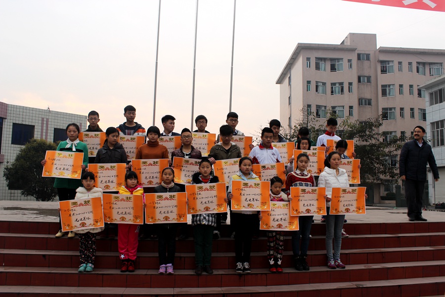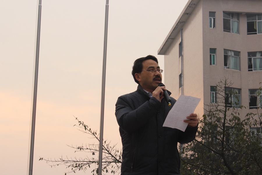 在雄壯激揚的國歌聲中,鮮艷的五星紅旗冉冉升起。訓導處王維璜主任宣布上學期優秀班集體名單和行政辦王曉勤主任宣布上期獲得2000元及以上獎學金學生名單后,阮平校長給獲獎班級和學生發獎。